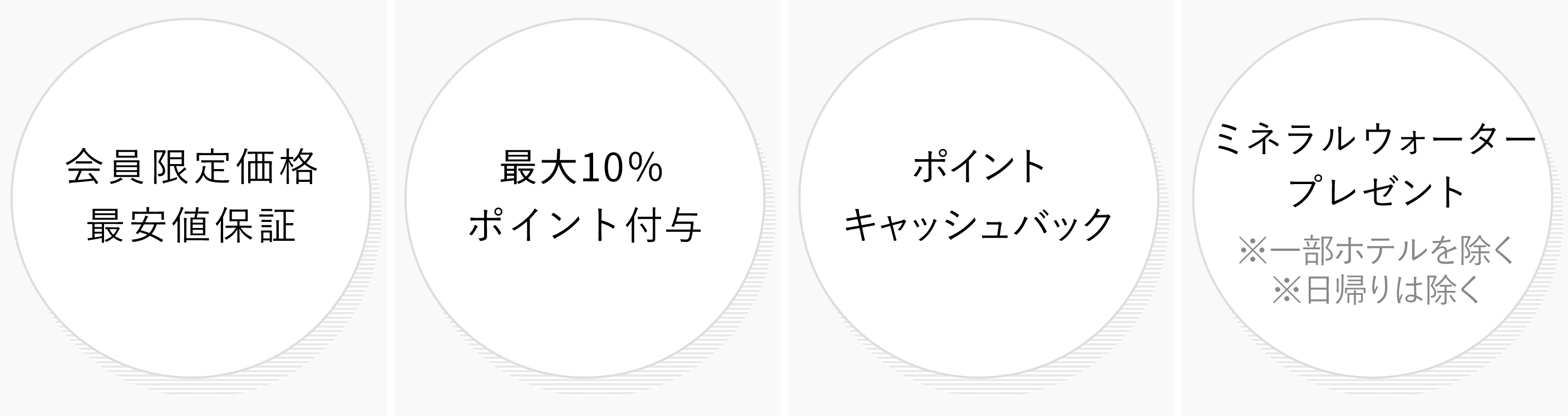 (※)デイユースなど、チェックイン・チェックアウト時間が指定されているプランまたは、レイトアウト/アーリーチェックインがついている宿泊プランの場合、会員特典のレイトアウト/アーリーチェックインを併用して利用することはできません。