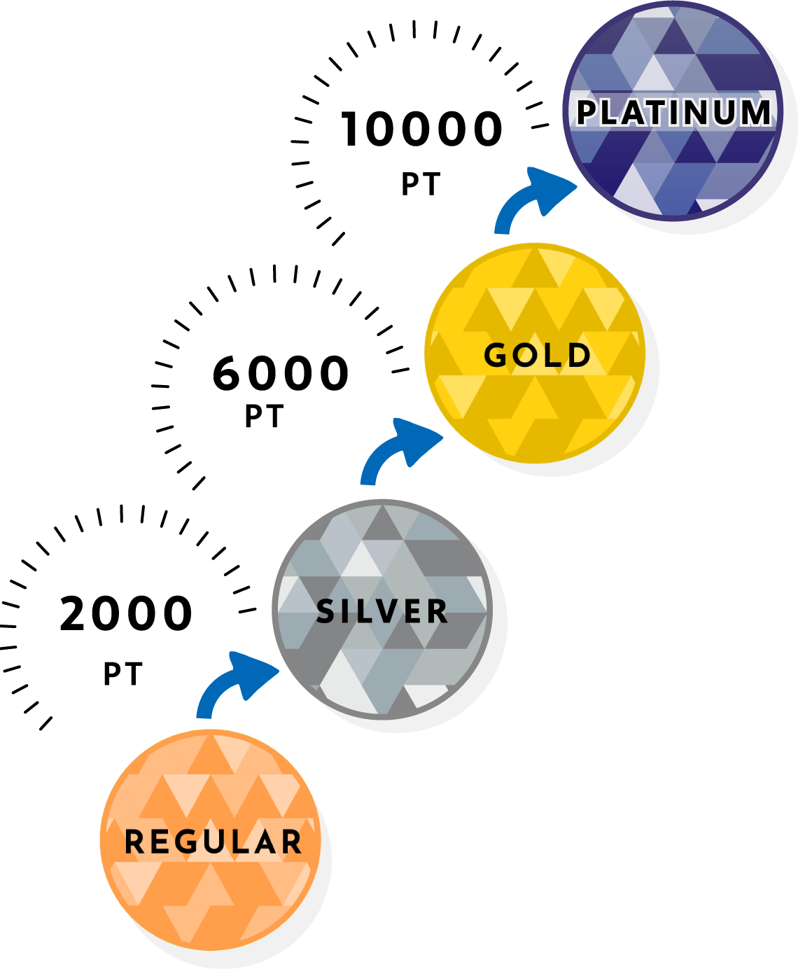 会員登録すると、レギュラー会員、ランクアップするとシルバー会員、ゴールド会員、プラチナ会員となります。 -