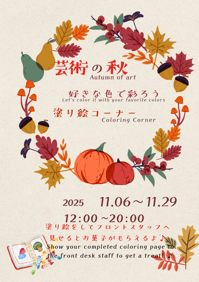芸術の秋 好きな色で彩ろう「ぬりえでお菓子プレゼント」