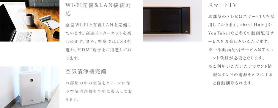 ※ボディタオル・歯ブラシ・ヘアブラシ・カミソリ・綿棒は、ロビーのアメニティコーナーからお持ちいただけます。