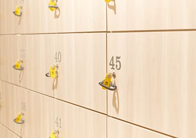 清潔で広々とした洗面所付きの脱衣所がございます。鍵付きのロッカーがついており、貴重品も安心です。