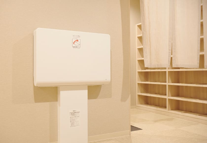 安心してご入浴いただけるように、脱衣所の前にセキュリティシステムを設置しています。 ※女性専用
