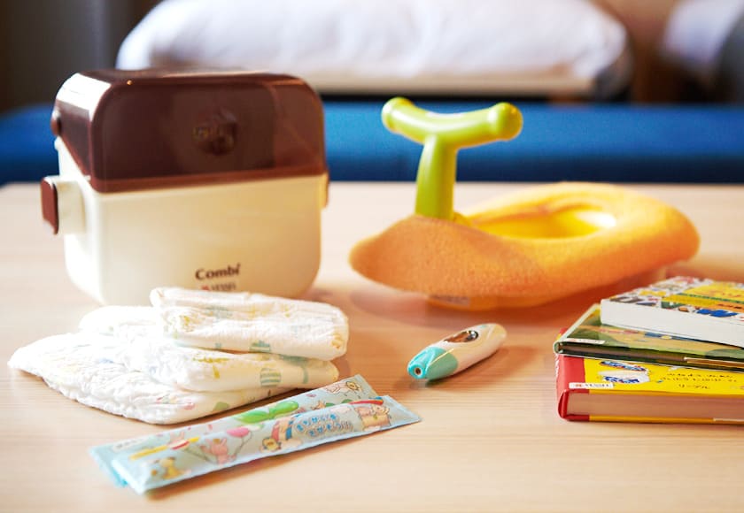 ファミリーでお気軽にご旅行していただけるようにお子様専用のアメニティが充実しております。フロントにてご用意しておりますので、お申し付けください。