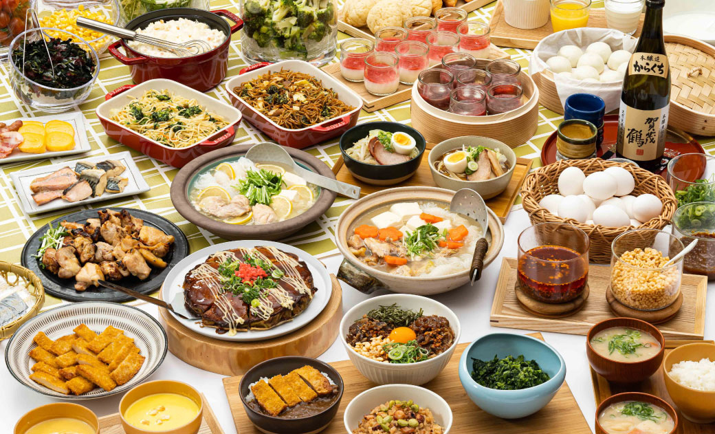 東広島の郷土料理「美酒鍋」をはじめ、東広島の新名物「へそ丼」、地元名産のお味噌など朝ごはんで広島の人気のご当地グルメを味わえます。