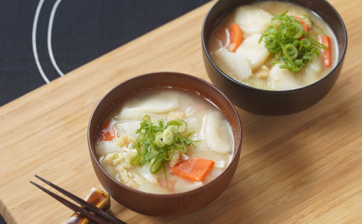 広島で白みそといえば新庄味噌。昔ながらの製法で、素材を生かした新庄味噌の「白みそ」を団子汁にした「新庄味噌を使った団子汁」と、隠し味に麹を使ったコク深い「麹と新庄白味噌を使った粕汁」を日替わりでご用意しております。ほっこりとした美味しさです。