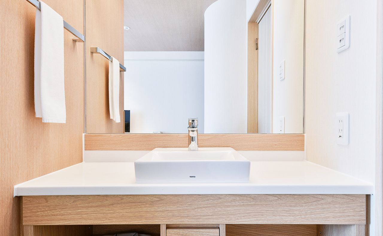 バス・トイレと一緒に洗面台のあるホテルが多いなか、当ホテルではバス・トイレとは別に洗面台を設置。鏡も大きく、ゆったりご利用になれます。