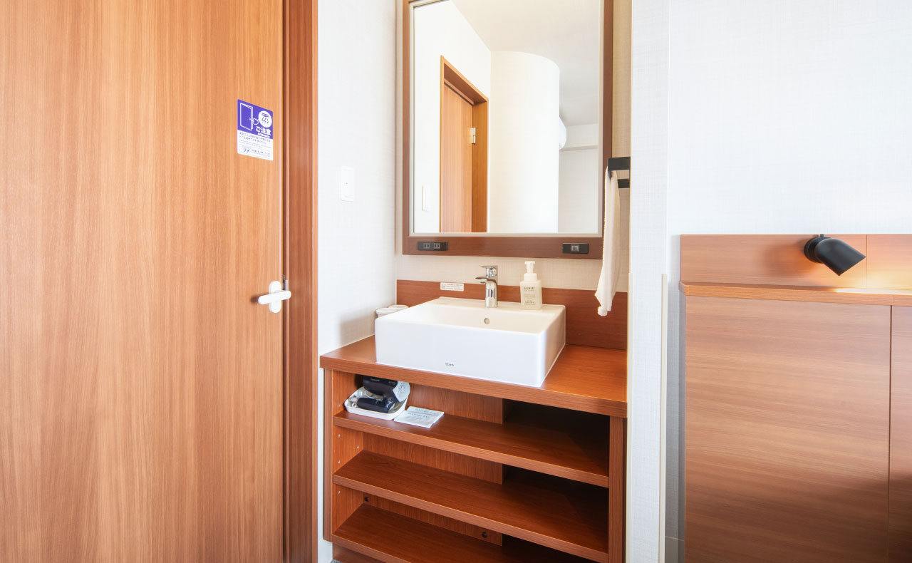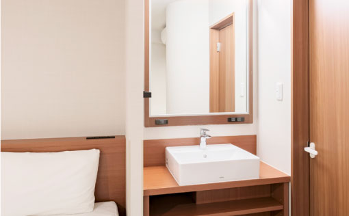 バス・トイレと一緒に洗面台のあるホテルが多いなか、当ホテルではバス・トイレとは別に洗面台を設置。鏡も大きく、ゆったりご利用になれます。
