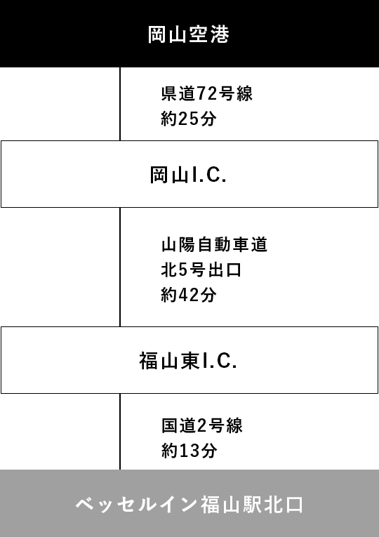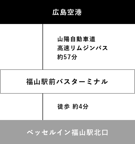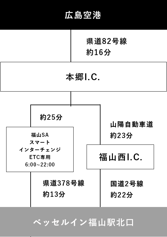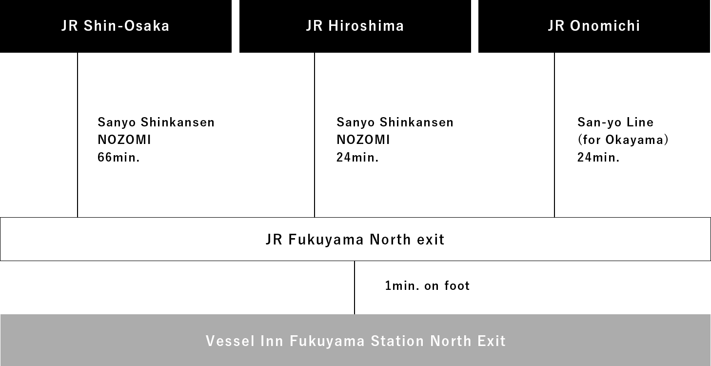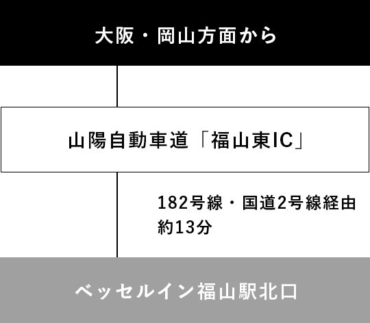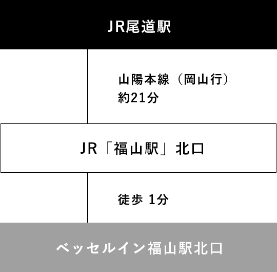 JR「福山駅」北口から徒歩1分。山陽新幹線やお車でもアクセスが良く安心です。福山の中心地、尾道・広島へも便利な立地です。