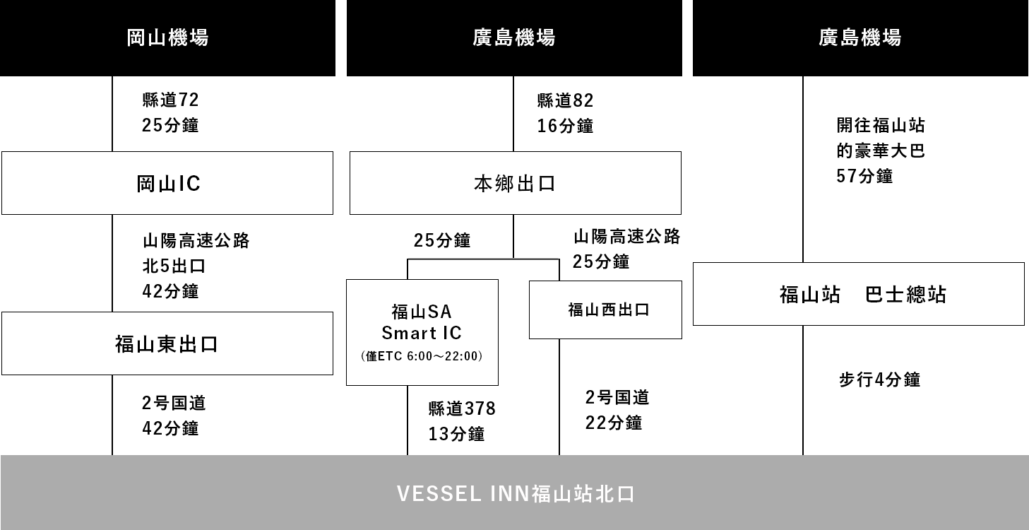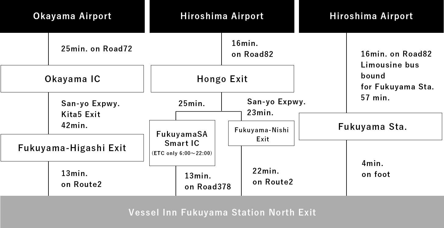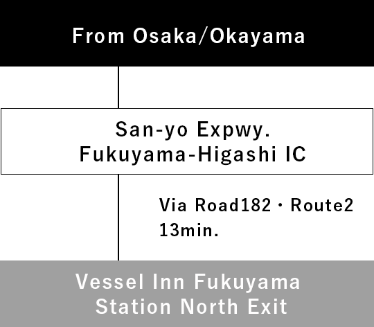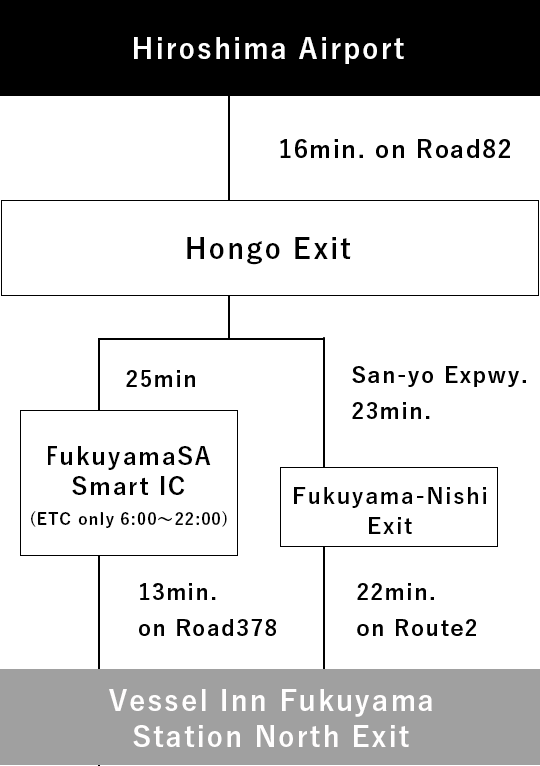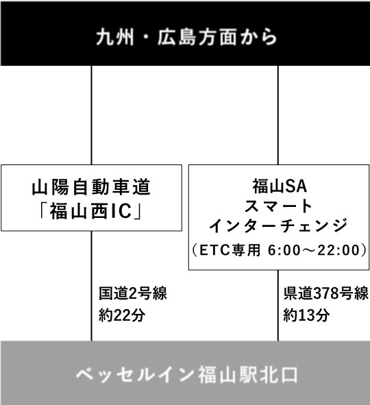 ※大型車は福山ニューキャッスルホテル(徒歩3分)で駐車可能です。事前に予約が必要ですので、フロントにお問い合わせください。(TEL. 084-991-1000)
