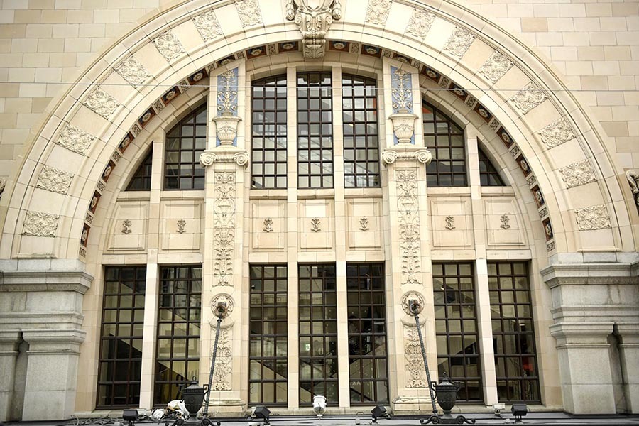 This theater is famous for theater and kabuki performances. The building, designed by Tokusaburo Kimura of Obayashi Corporation, is a Neo-Renaissance-style building with a distinctive large arch in the front, and is well-known as the face of Osaka.