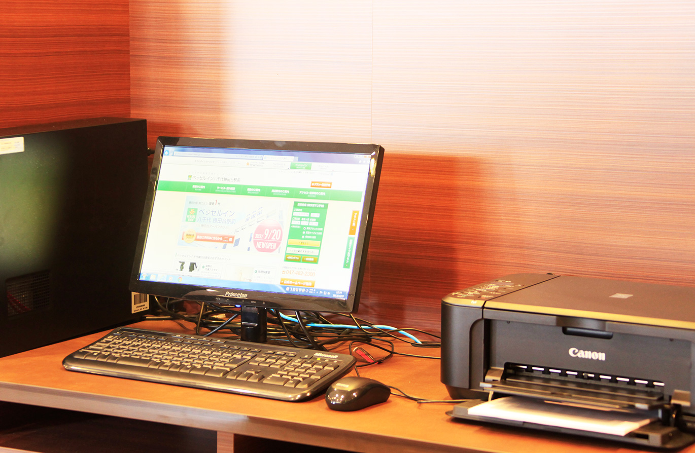 ロビーには、パソコン(Excel,Word)を完備しております。プリンターも無料でご利用いただけます。