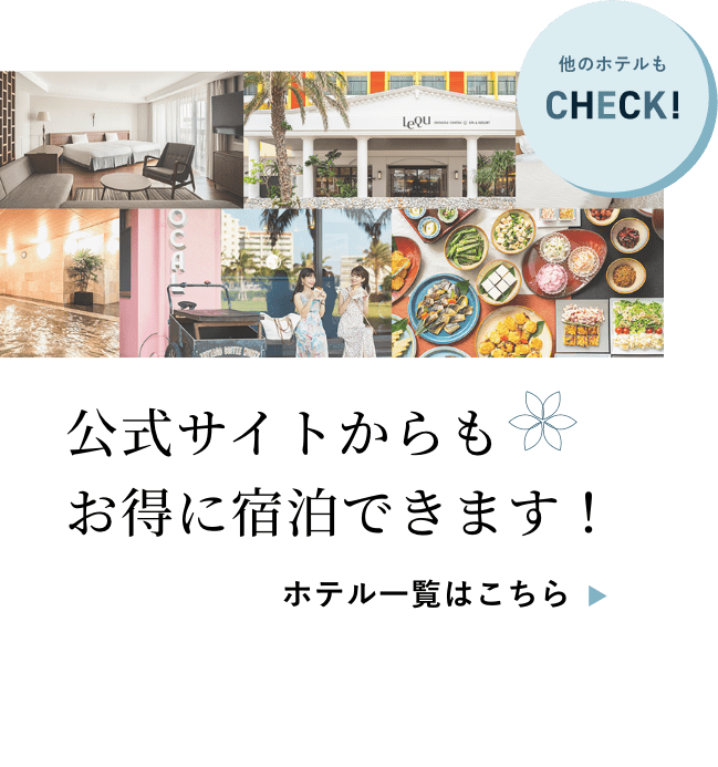 眼前に広がる海と夕陽を臨むインフィニティプールやカフェ&バーを備えたLequ自慢のスパをはじめ、沖縄では珍しい天然温泉も。ワンランク上のリラックス感を味わえます。