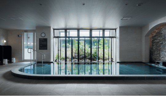別館の最上階12階には屋上プール。高層階からの海の景色を見ながら、屋外の空気や日差しを浴び、特別な時間をお過ごしいただけます。また、サウナを設けた大浴場は、目の前に広がる絶景が、旅の疲れを癒します。