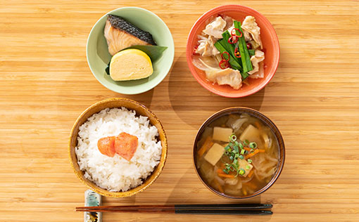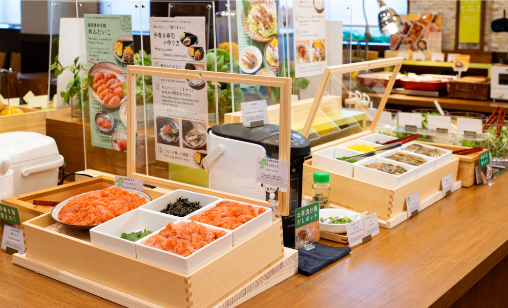 『辛子明太子』をはじめ、『博多のもつ煮込み』など博多名物をご用意!もつ煮込みは、醤油ベースのおだしにキャベツやニラなどの野菜をたっぷり加えた栄養たっぷり!朝から元気になること間違いなしです。