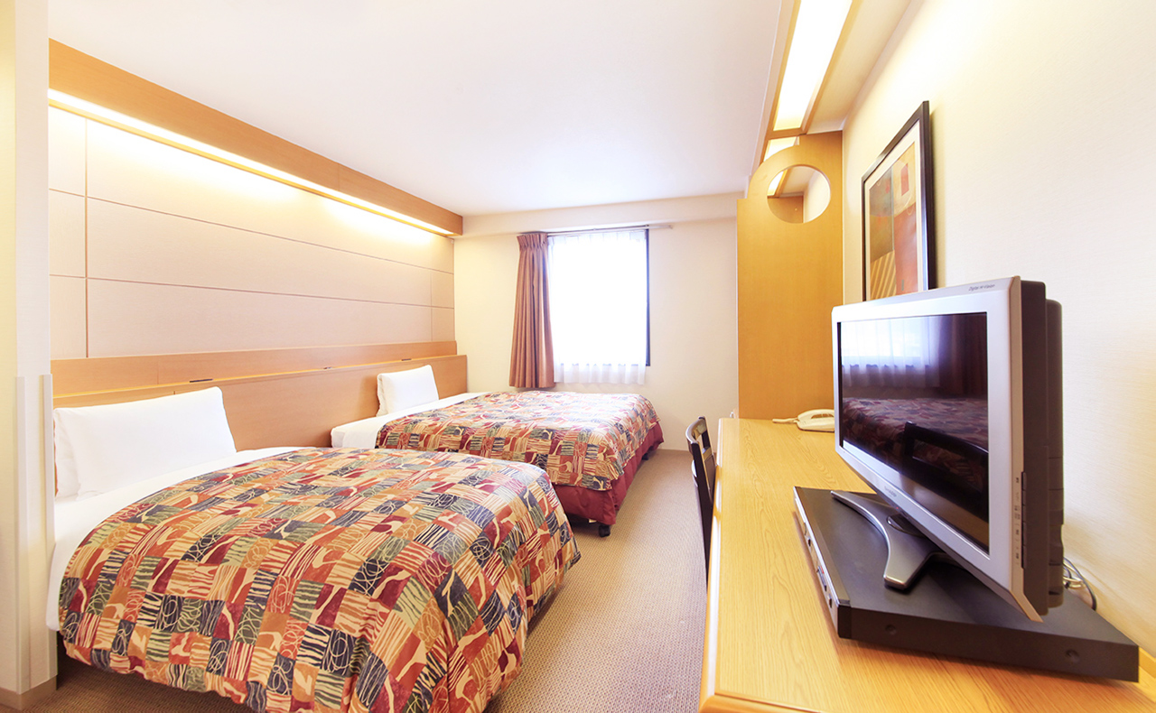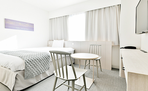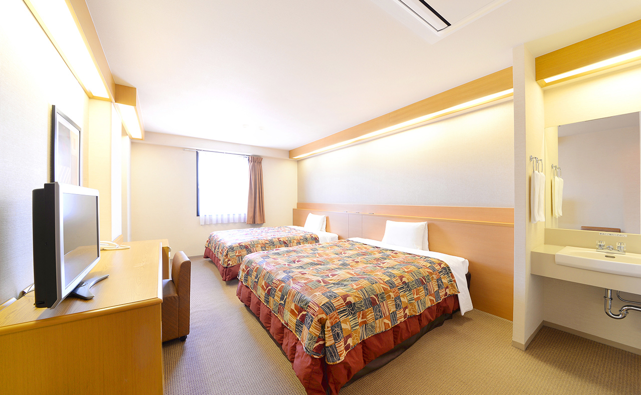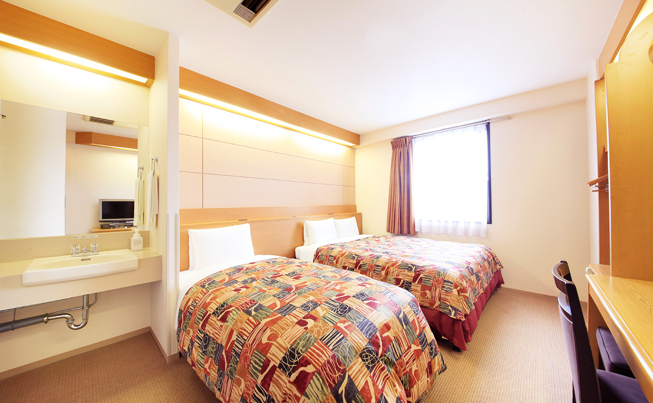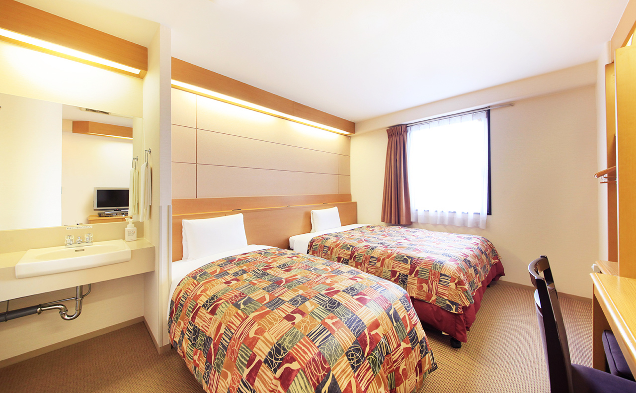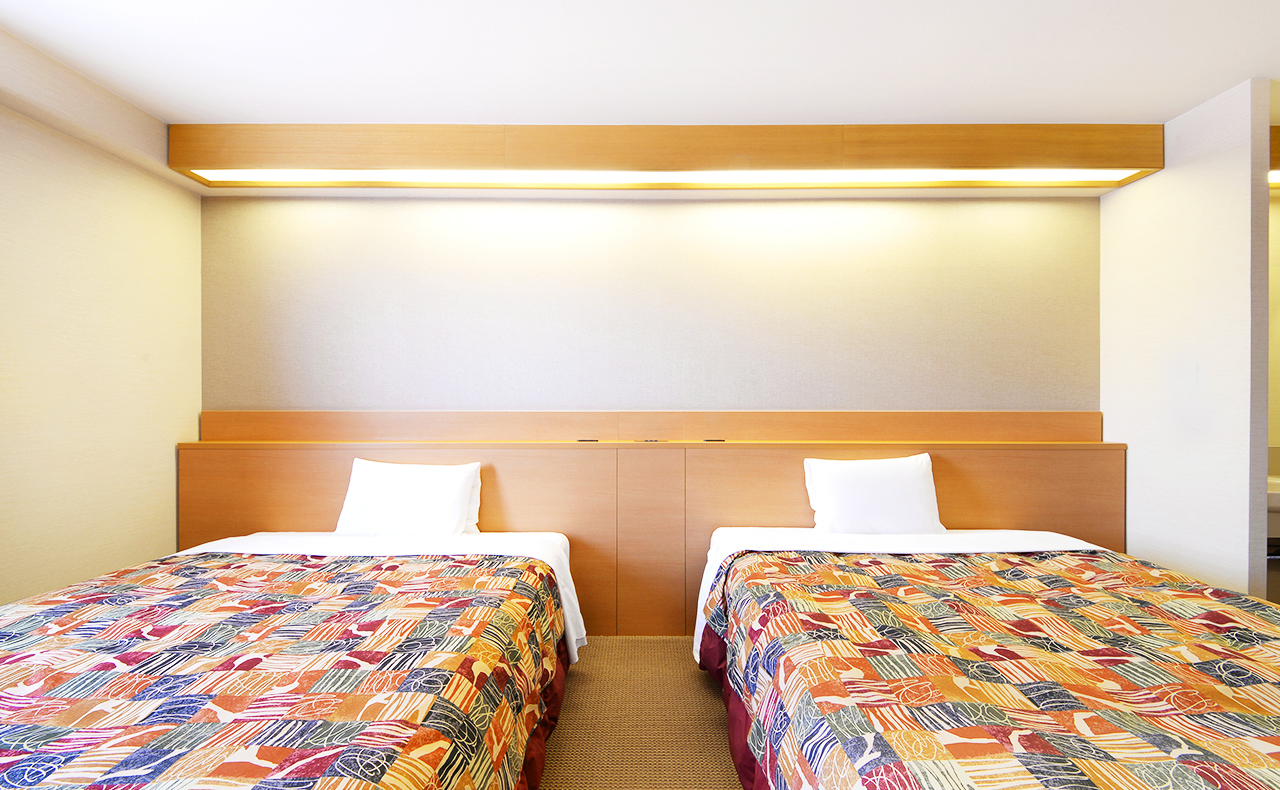 150cm幅ベッドのツインルームです。洗面化粧台・バス・トイレがそれぞれ独立しており、快適にお過ごしいただけます。