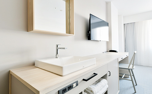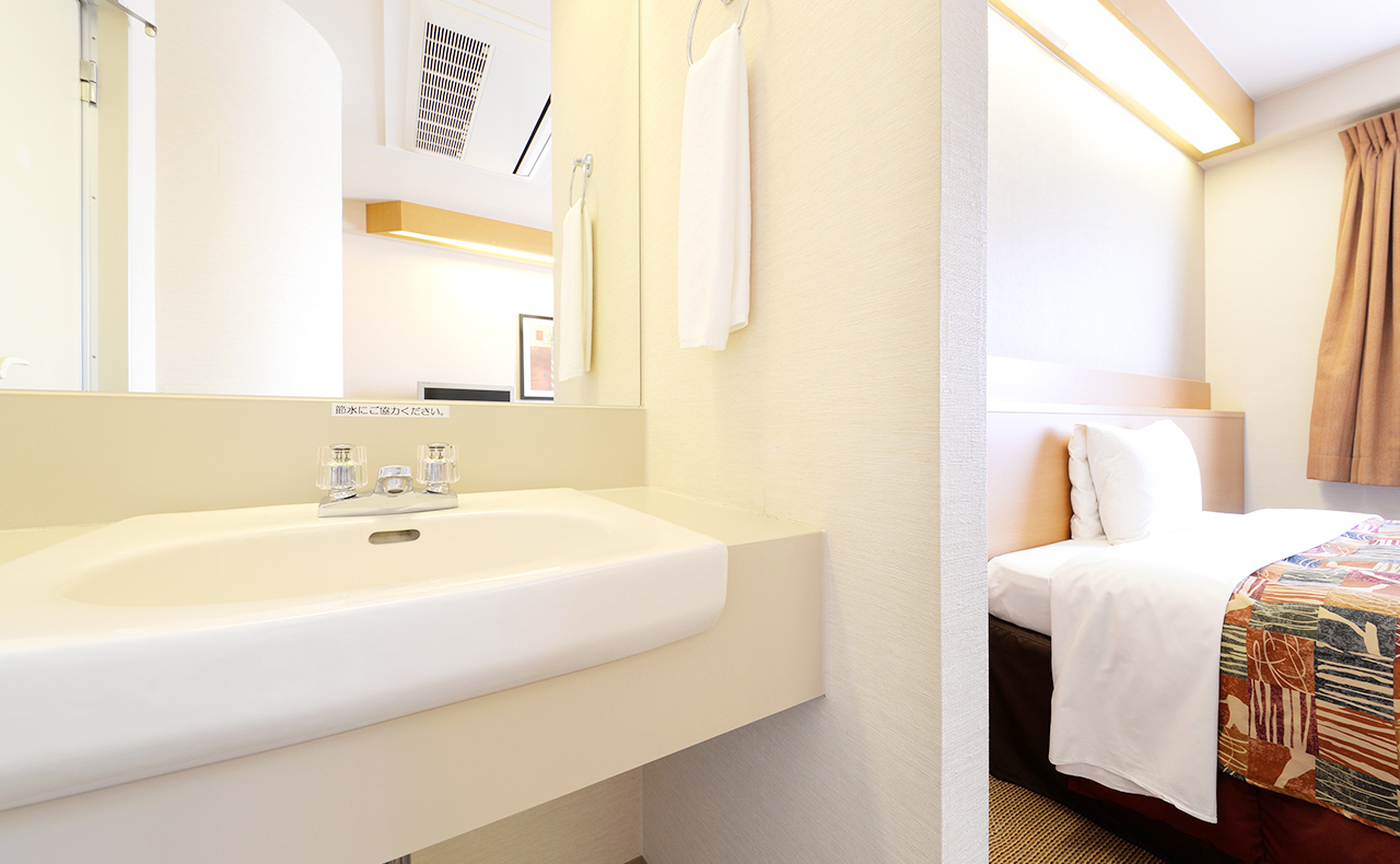 バス・トイレと一緒に洗面台のあるホテルが多いなか、当ホテルではバス・トイレとは別に洗面台を設置。鏡も大きく、ゆったりご利用になれます。