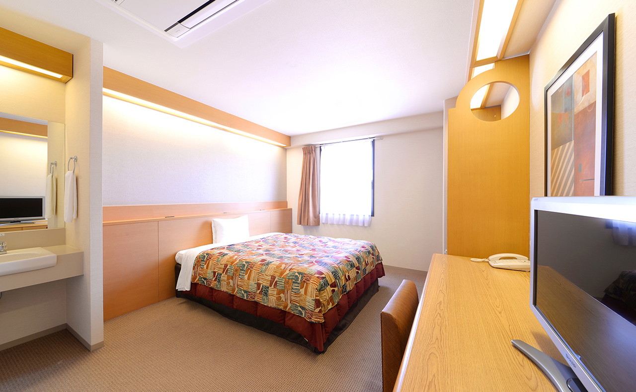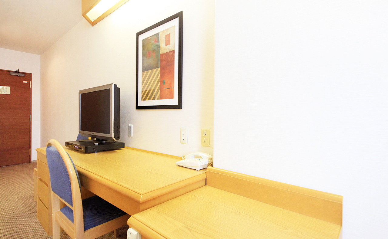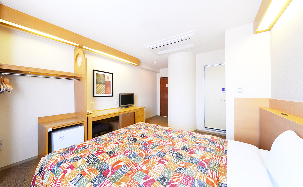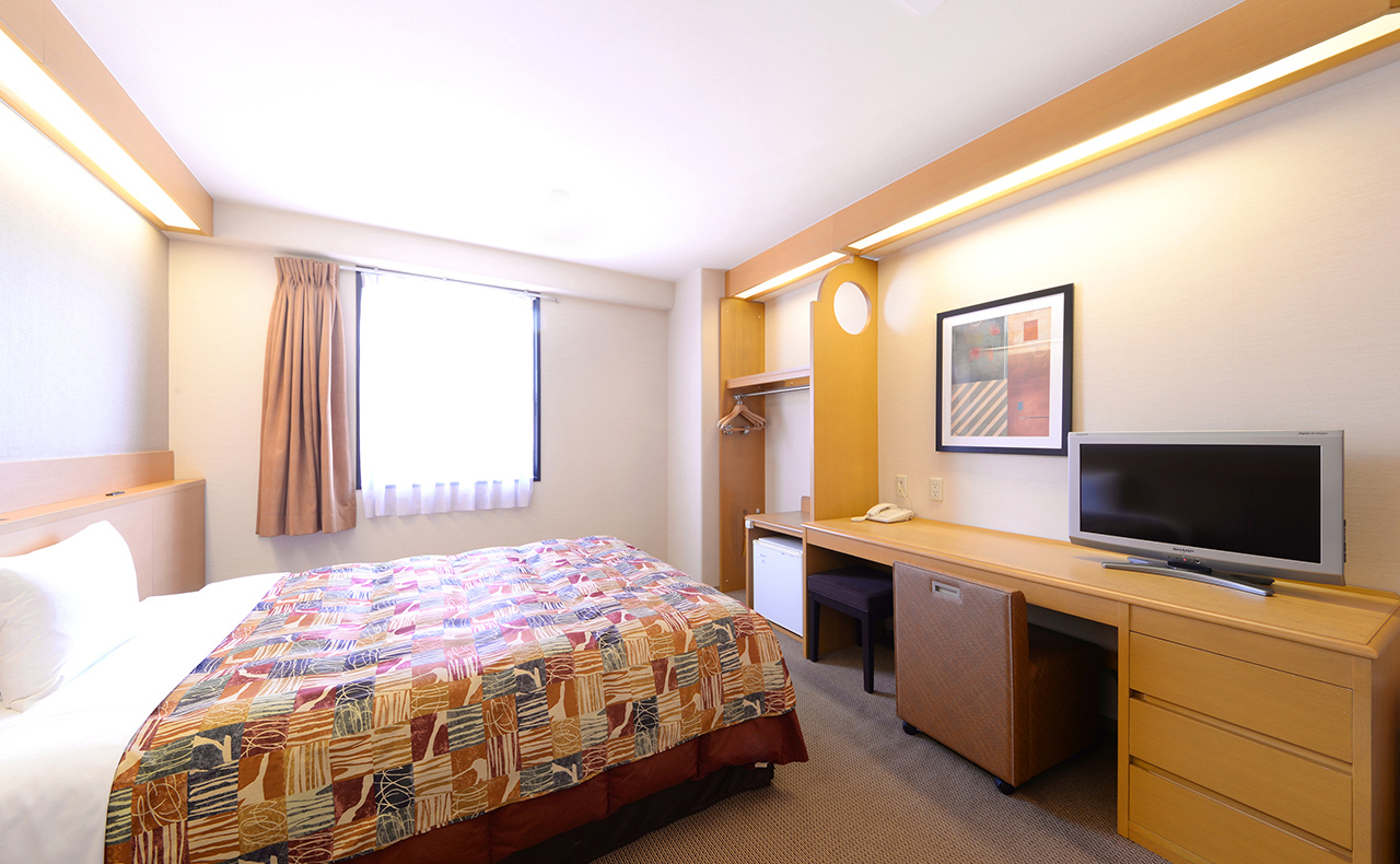 全室ベッド幅150cmのゆとりサイズを完備。客室はビジネスでもご家族でも満足の広さ。お部屋では靴を脱いで素足でくつろげます。