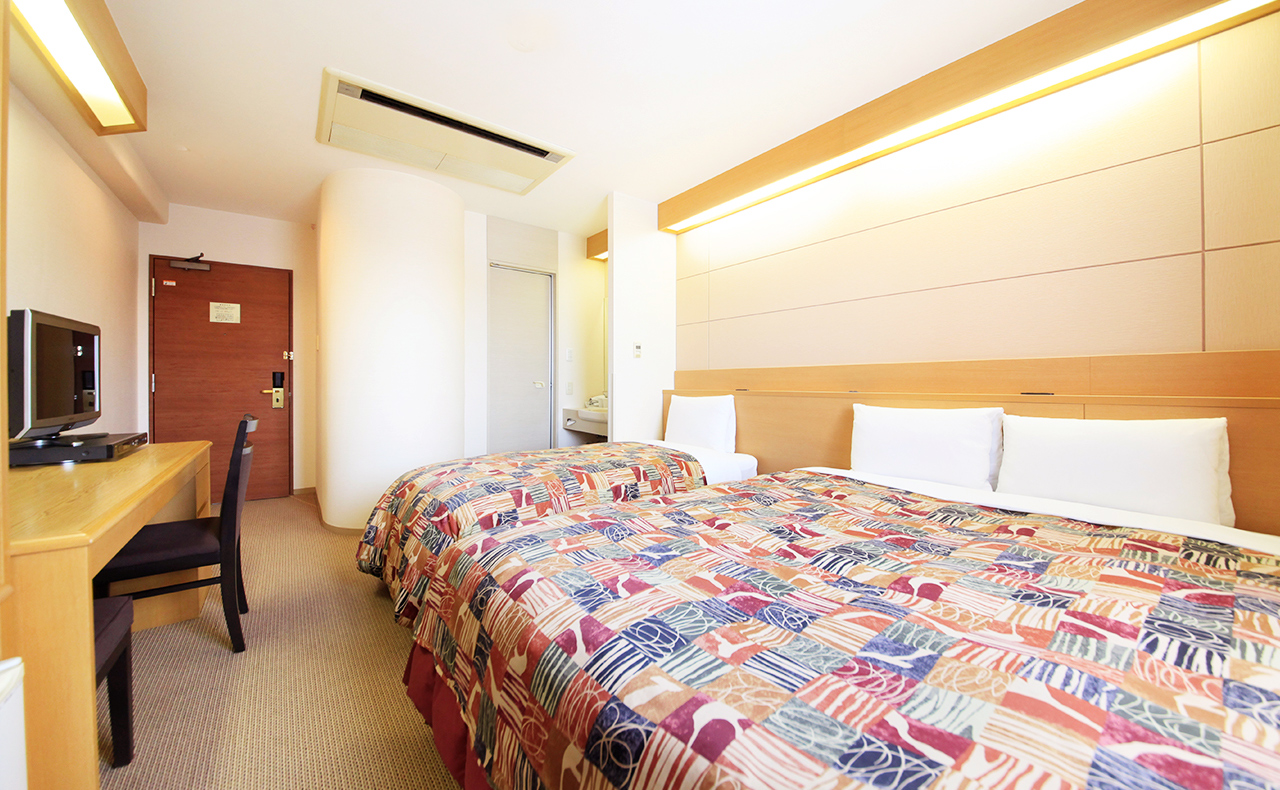 150cm幅のベッドと、90cm幅のベッドが2台設置の客室。洗面化粧台・バス・トイレがそれぞれ独立しており、快適にお過ごしいただけます。