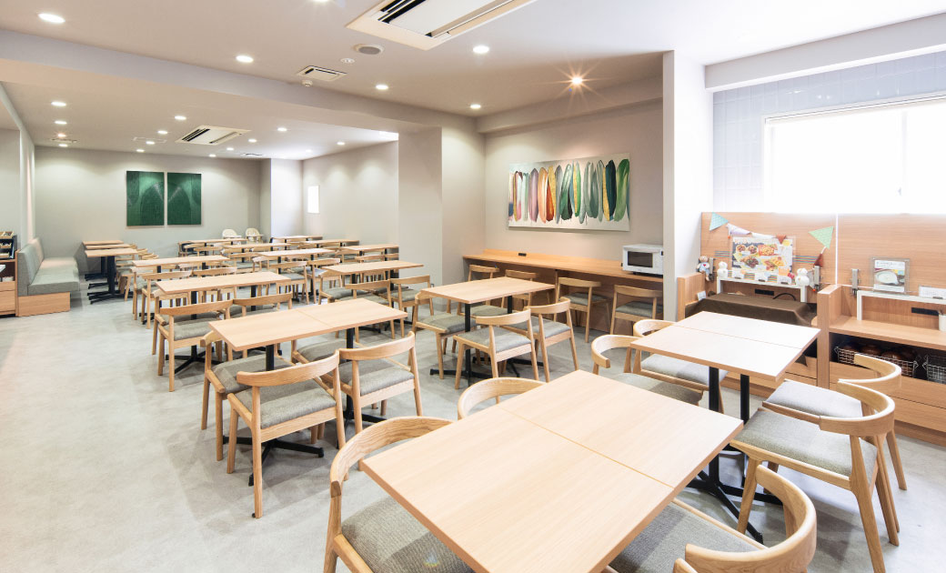 1Fラウンジには、ウェルカムドリンクをご用意しております。移動で乾いた喉を潤してください。お部屋にあがられる前におくつろぎいただいたり、客室にお持ちいただくことも可能です。また、空いたスペースで仕事もできます。