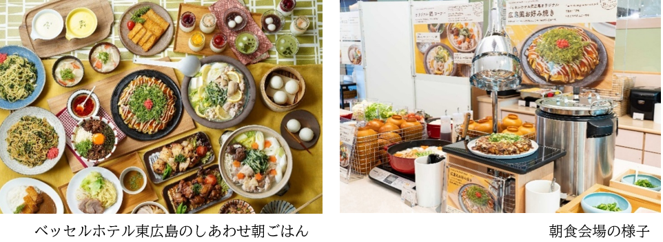 東広島の郷土料理の「「美酒鍋(びしゅなべ)」をはじめ、広島の定番「お好み焼き」、新名物「へそ丼」などご当地グルメが目白押しです。朝から元気になること間違いなしのメニューが盛りだくさんのしあわせ朝ごはんです。