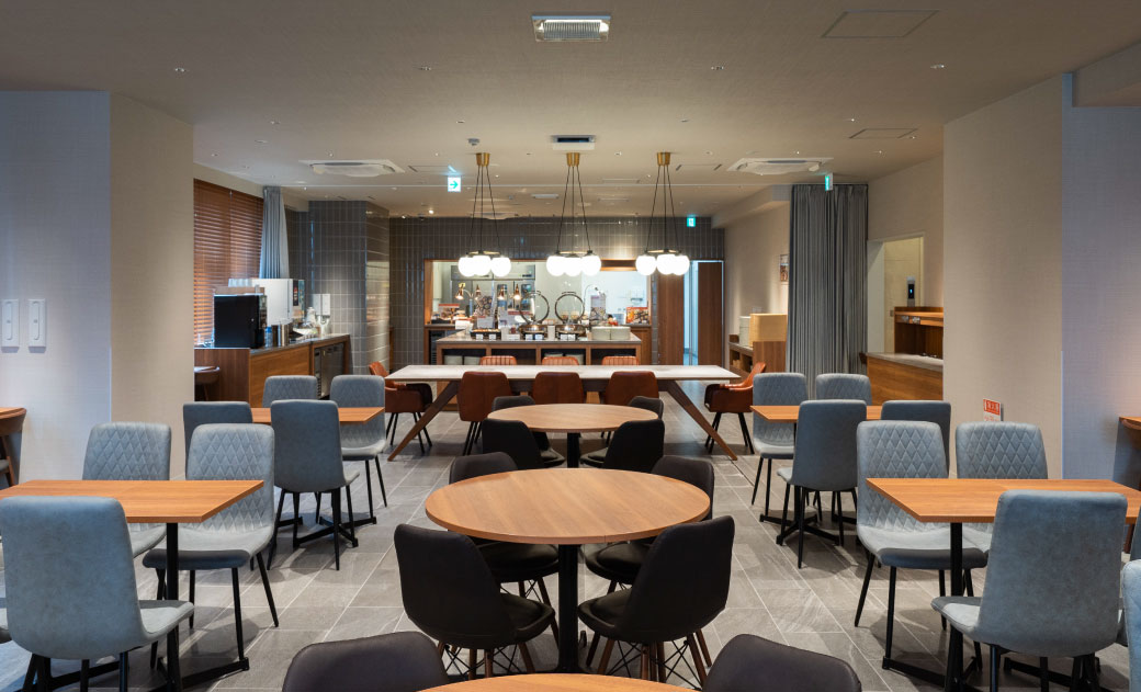 お仕事や観光など朝が早いお客様も、朝食をお楽しみいただけるよう朝6時から営業しております。広々としたラウンジで、朝の日差しを感じながら1日の英気を養ってください。