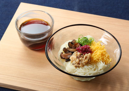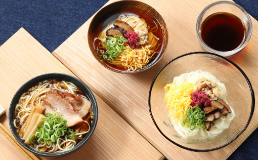 魚介出汁と鶏出汁をブレンドしたオリジナルスープの尾道風ラーメン、鯛そぼろと一緒に鯛出汁のきいた旨味ある冷たいつゆの広島鯛そうめん、鯛そぼろと一緒に鯛出汁のきいた旨味ある温かいつゆの広島鯛にゅうめんを日替わりでお楽しみいただけます。
