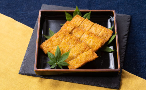 がんす=魚のすり身の練りもの。広島県呉市発祥の揚げかまぼこです。魚のすり身に玉ねぎや唐辛子などを混ぜて、パン粉をまぶして揚げたもので、広島ではB級グルメとして親しまれています。揚げたてをお楽しみください。