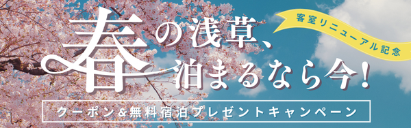【リニューアル記念】春の浅草、泊まるなら今!クーポン&無料宿泊プレゼントキャンペーン|5月6日(水)まで開催