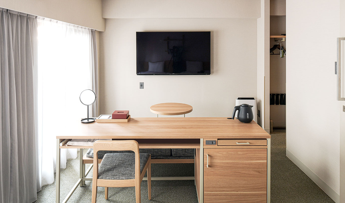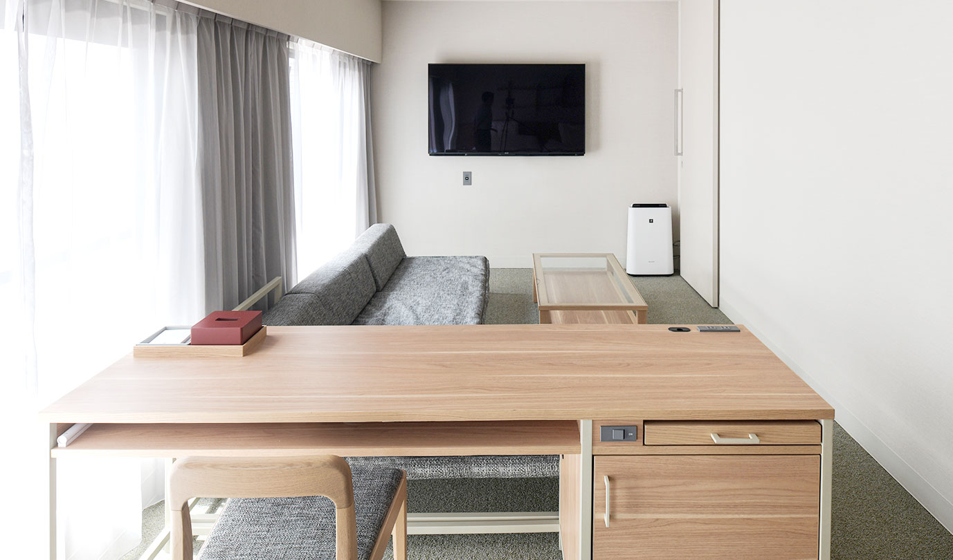 お部屋の中の空気をクリーンに保つ加湿機能付空気清浄機を全室に導入しております。