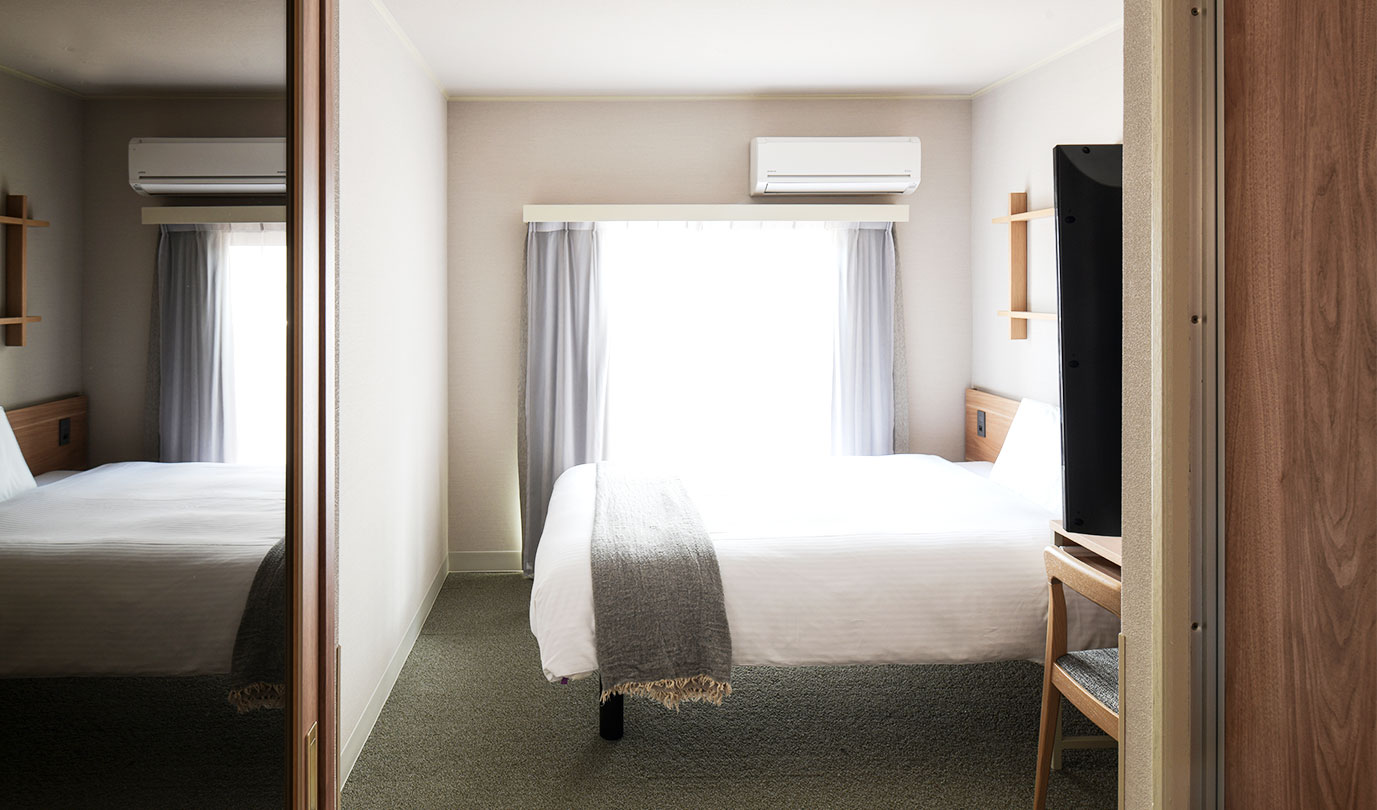 | ベッド幅 | 大人1~2名の場合:120cm×2台 大人3名の場合:120cm×2台、ソファベッド90cm×1台 |