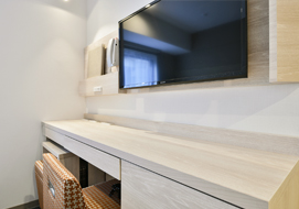 3Fには、宿泊者限定で男女別の大浴場を完備しております。それぞれ男性浴場は高温サウナ、女性浴場にはミストサウナを備えます。アメニティや、タオルも備えておりますので、身軽にご利用いただけます。