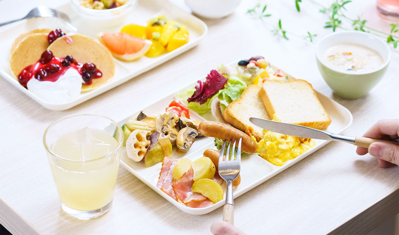 慌ただしい日常から少し離れた旅の1日のはじまりをゆったりとスタートできる朝食をビュッフェスタイルでご用意。朝ごはんの定番メニューから、ご当地の食材まで。少し贅沢でリラックスした旅の朝ごはんをお楽しみいただけます。