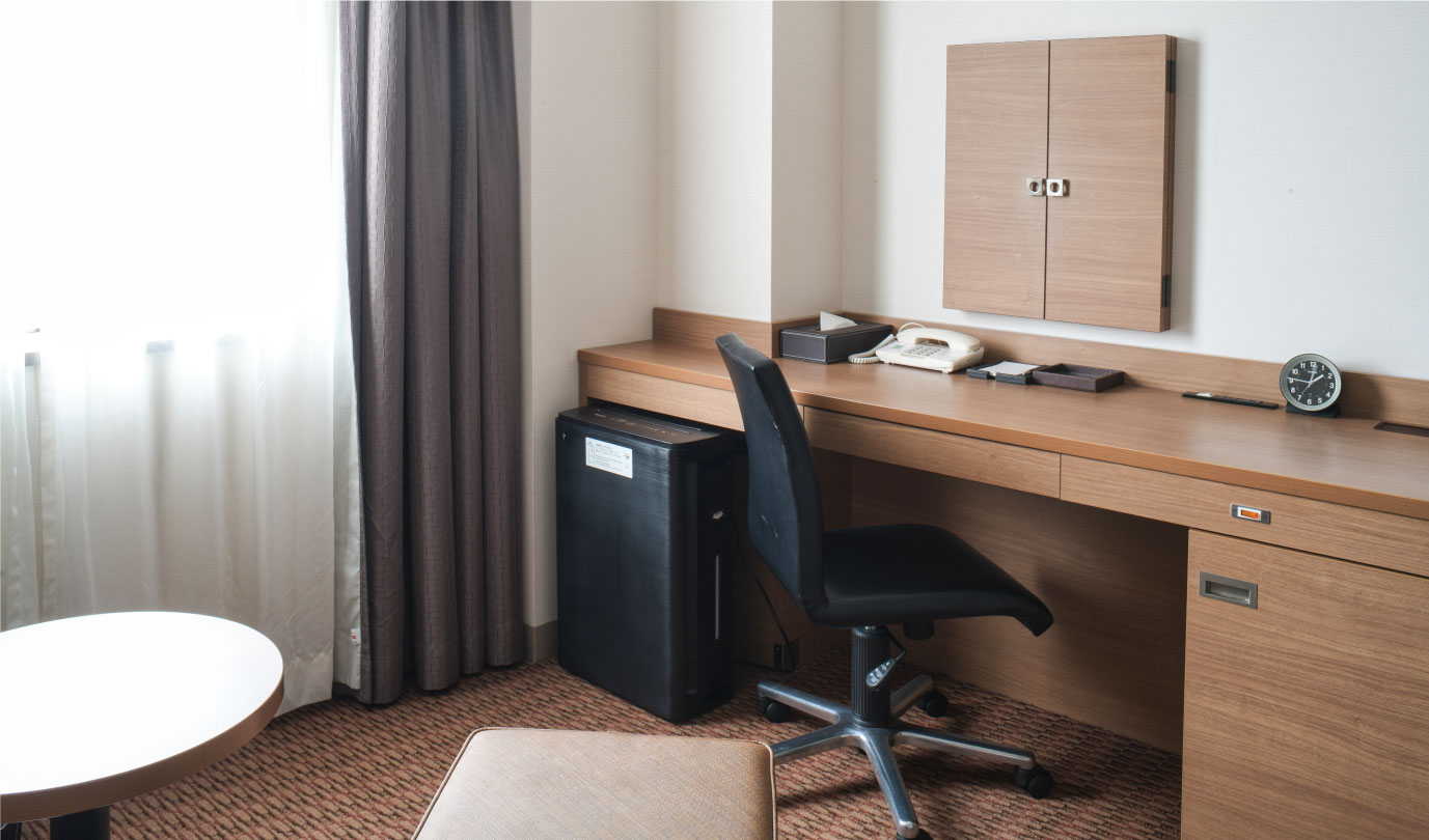 お部屋の中の空気をクリーンに保つ加湿機能付空気清浄機を全室に導入しております。
