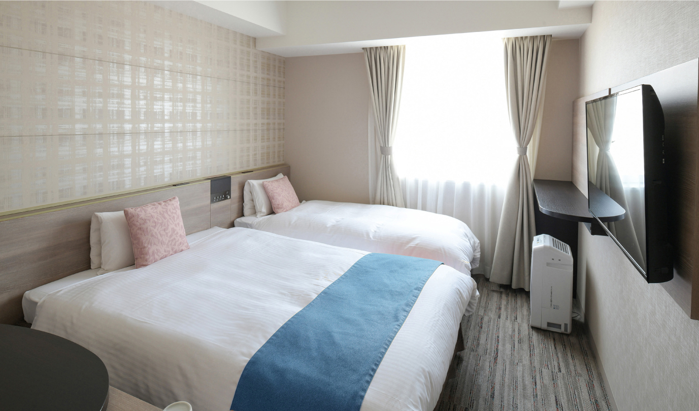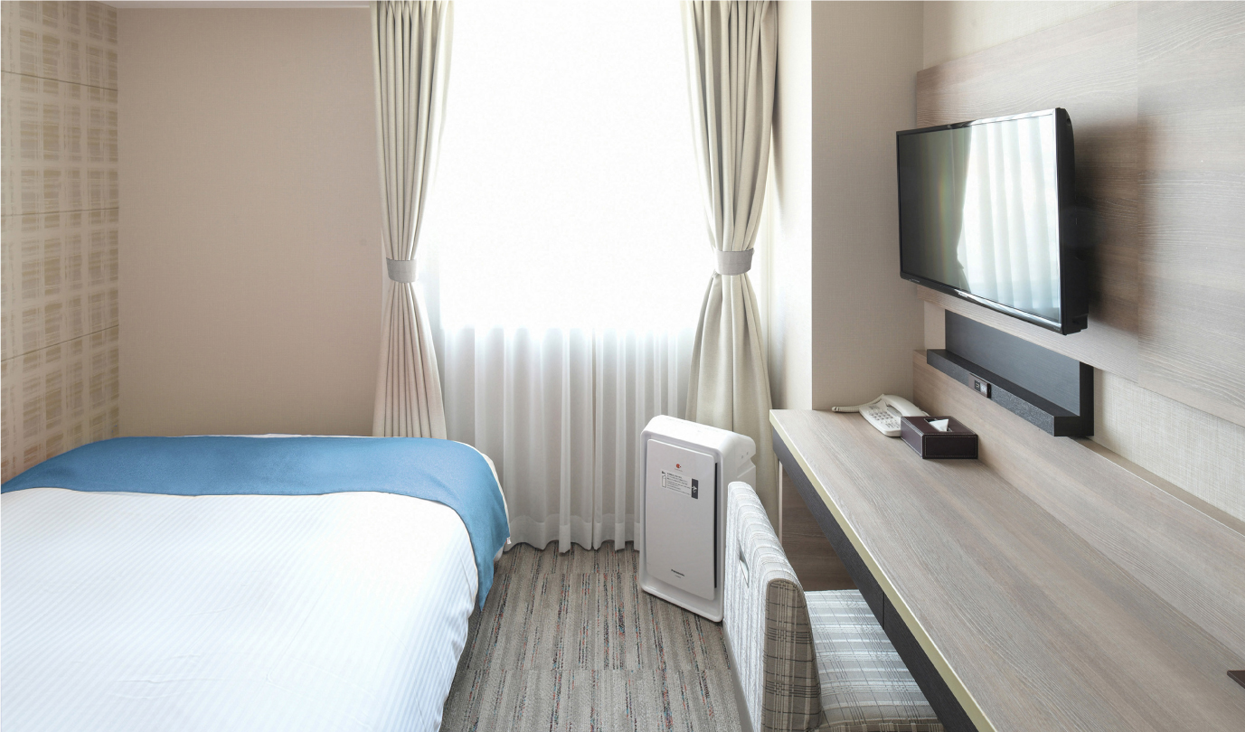 お部屋の中の空気をクリーンに保つ加湿機能付空気清浄機を全室に導入しております。