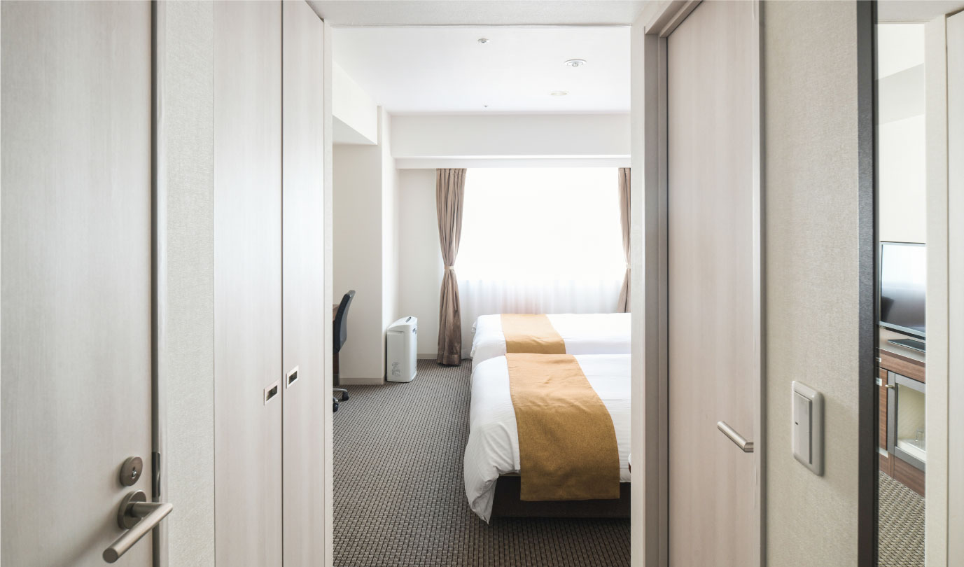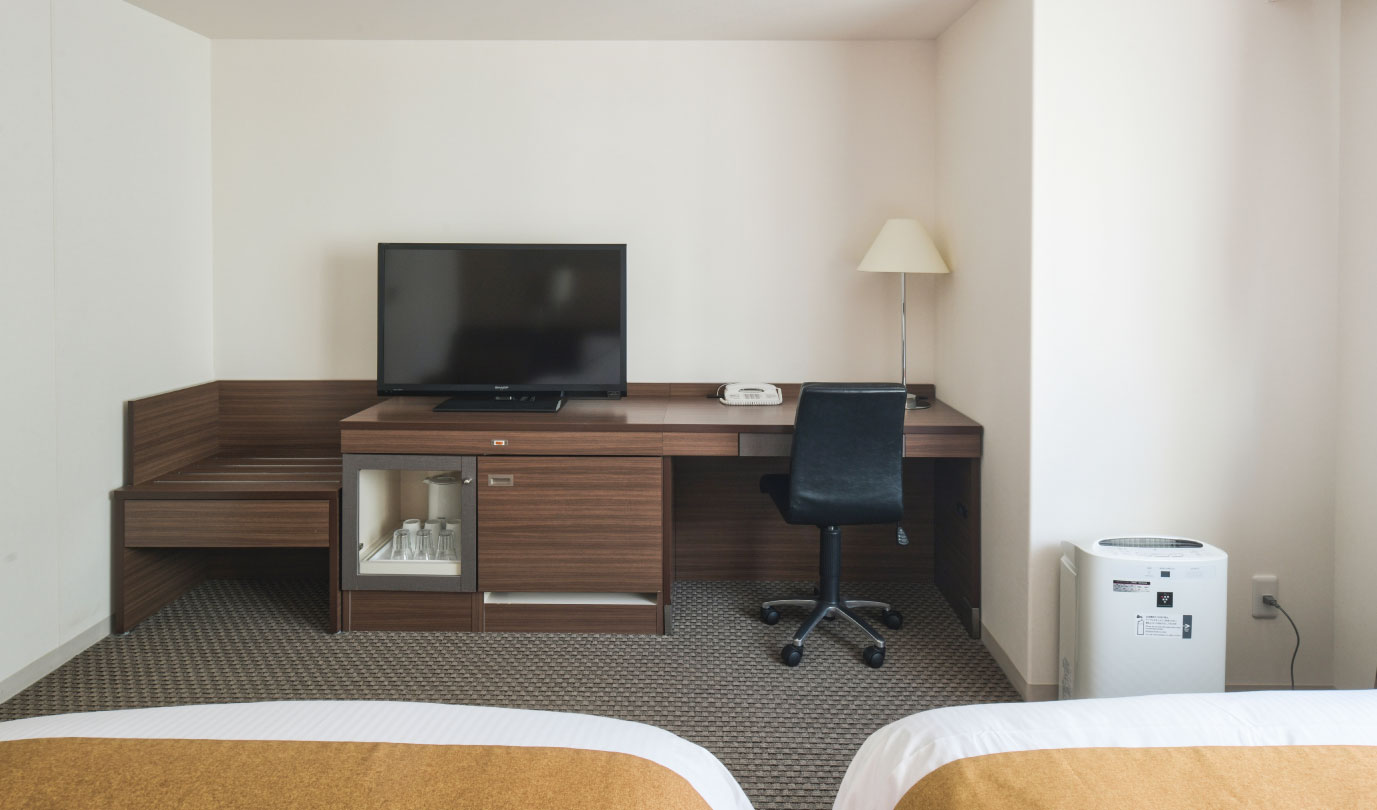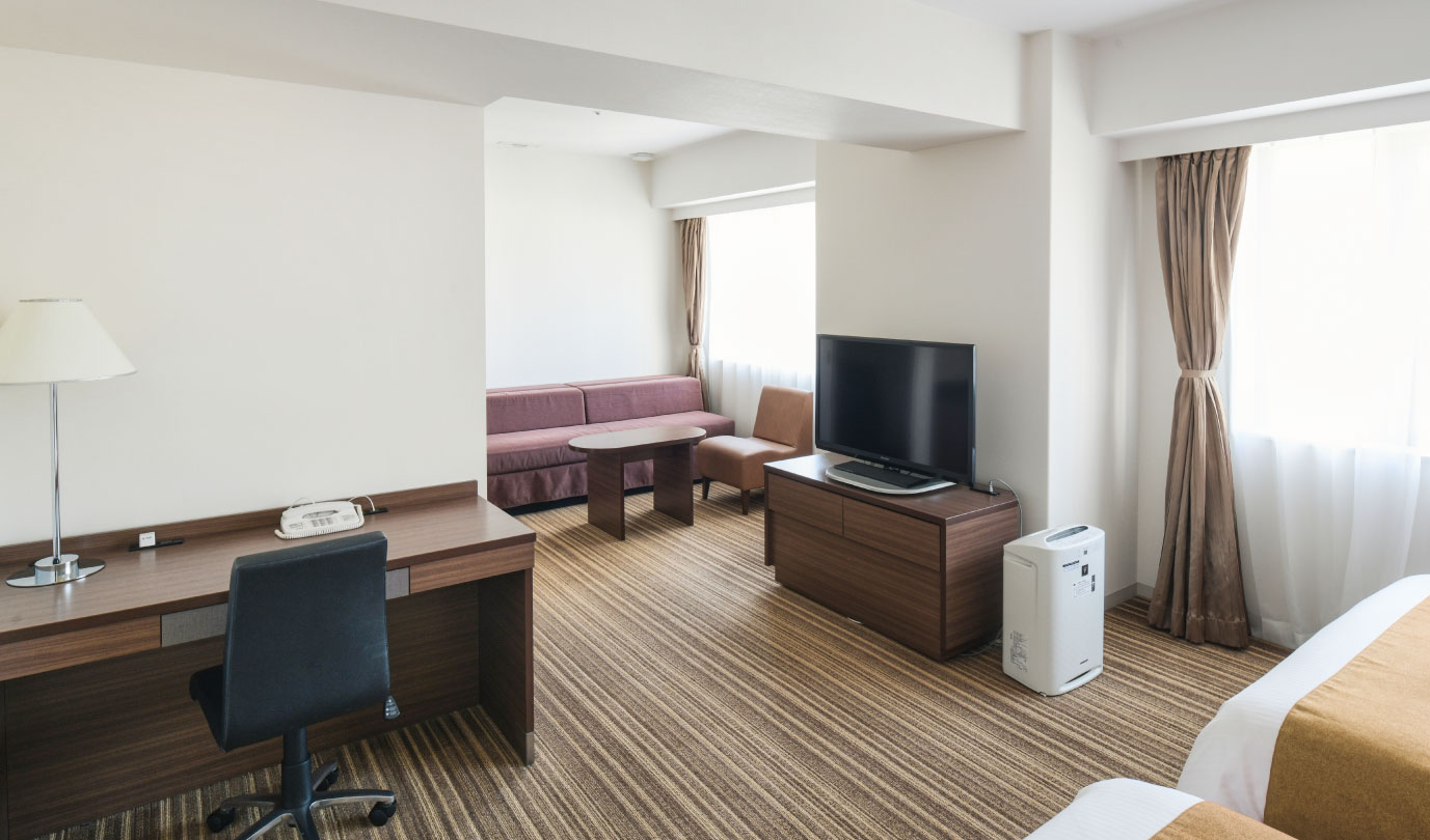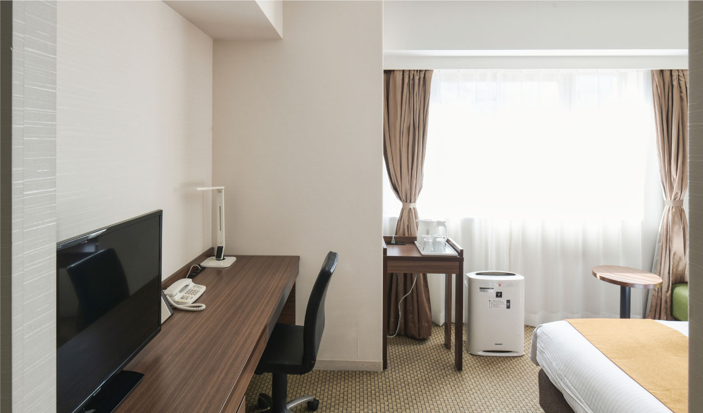 お部屋の中の空気をクリーンに保つ加湿機能付空気清浄機を全室に導入しております。