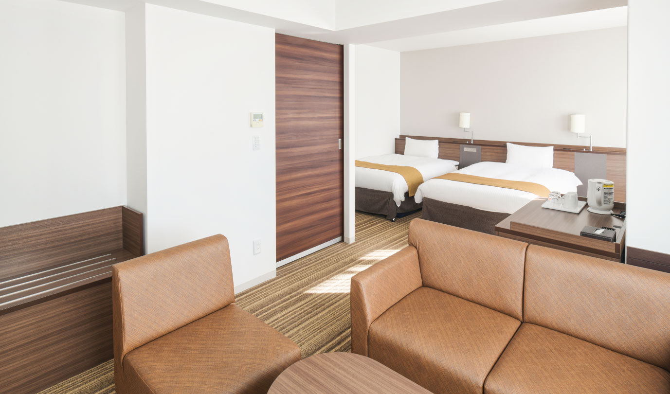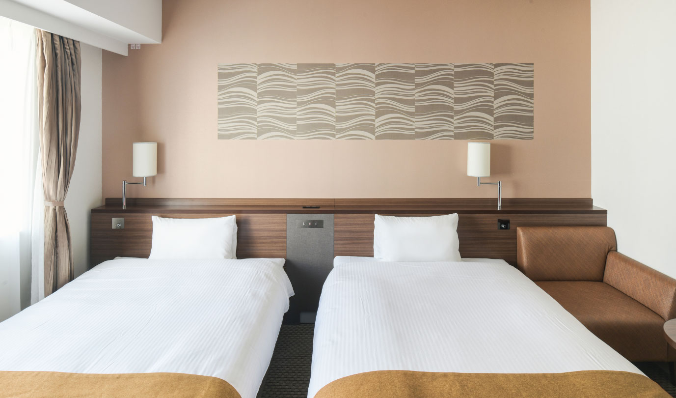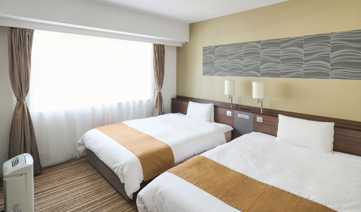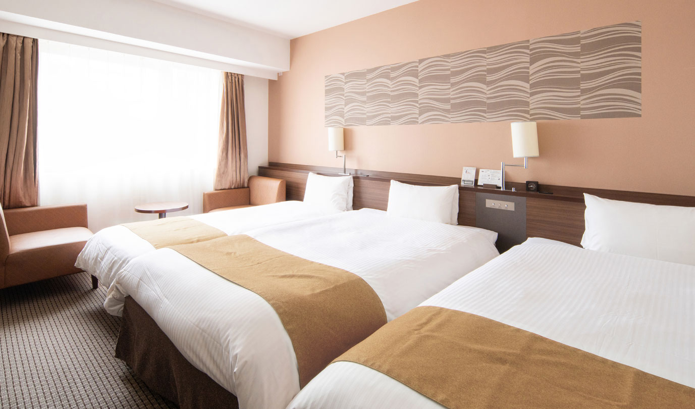 ※エキストラベッドはございませんので、宿泊人数が4名以上でもベッドは3台です。 ベッド台数(3台)とベッド幅(120センチ×2台、90センチ×1台)にご注意ください。