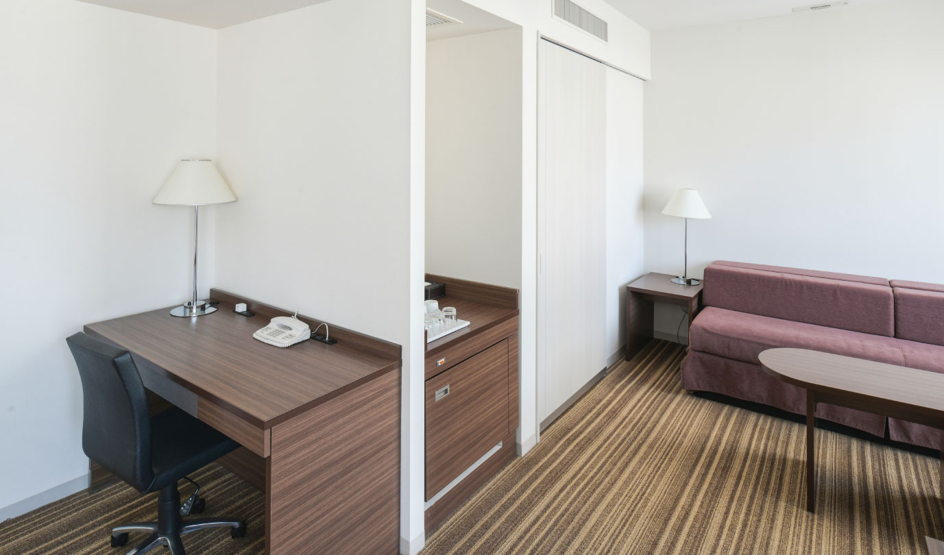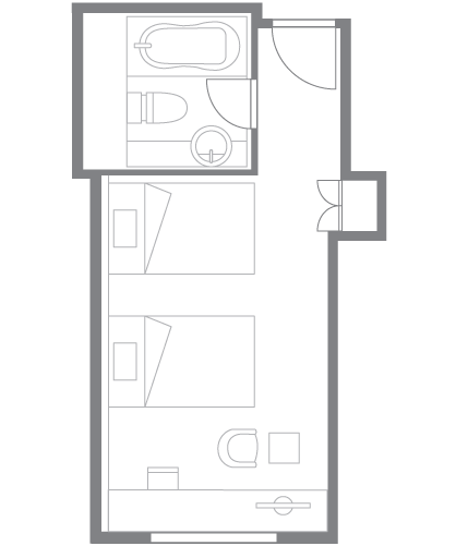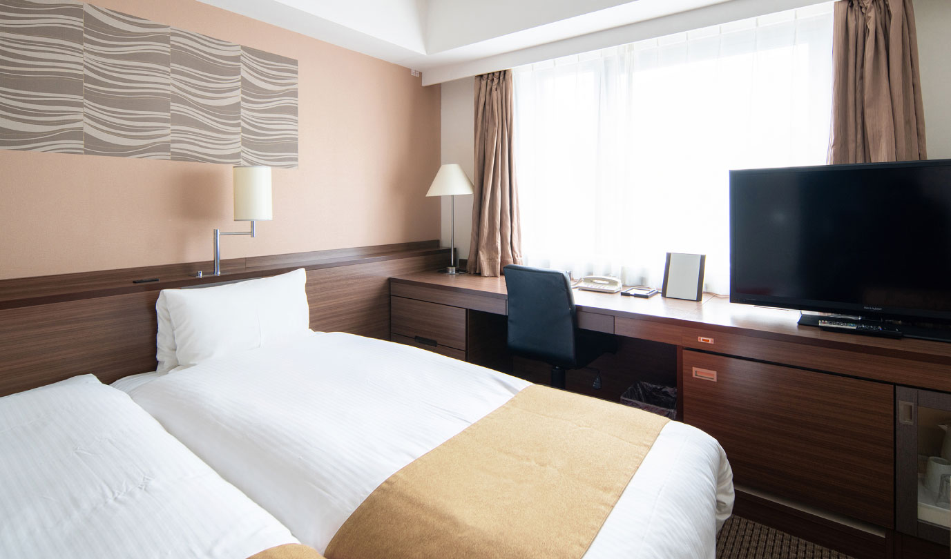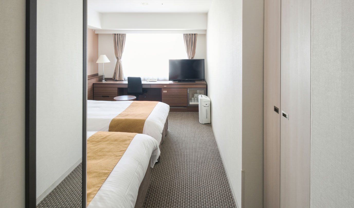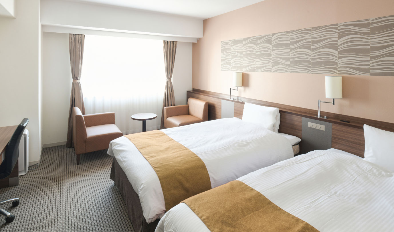 ※エキストラベッドはございませんので、宿泊人数が4名以上でもベッドは3台です。 ベッド台数(3台)とベッド幅(120センチ×2台、90センチ×1台)にご注意ください。