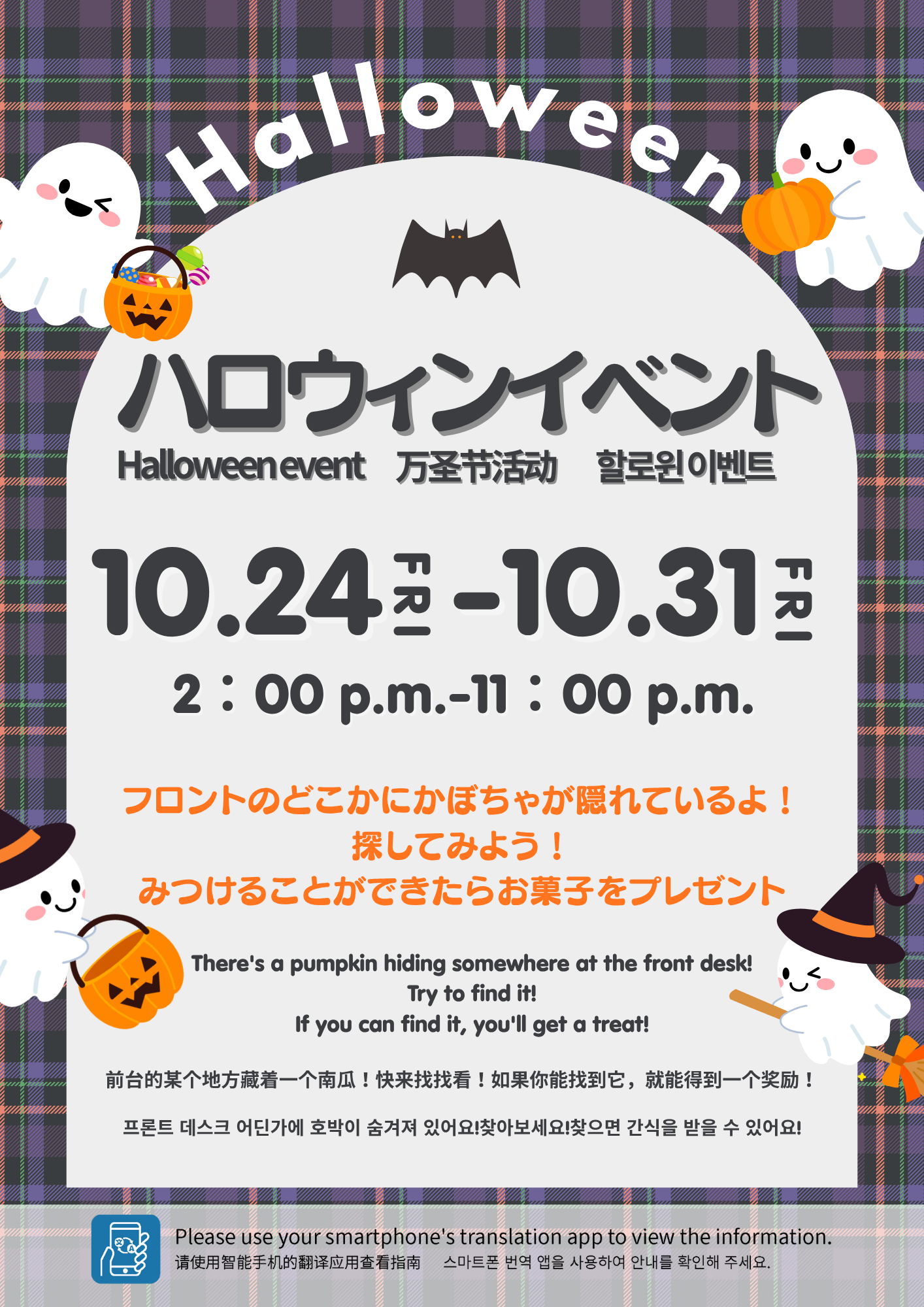 ハロウィン気分を楽しみながら、ホテルでのひとときをお過ごしください🎃
