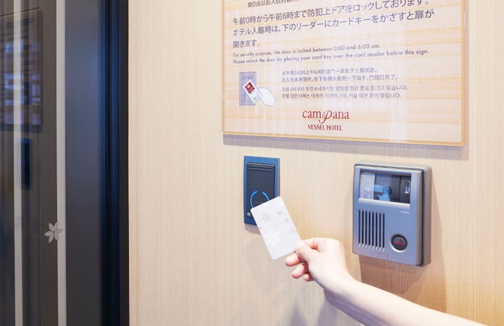 セキュリティーセキュリティーのため、夜0時を過ぎるとホテル入館にはカードキーが必要となっております。24時間フロントにスタッフがいるので安心です。