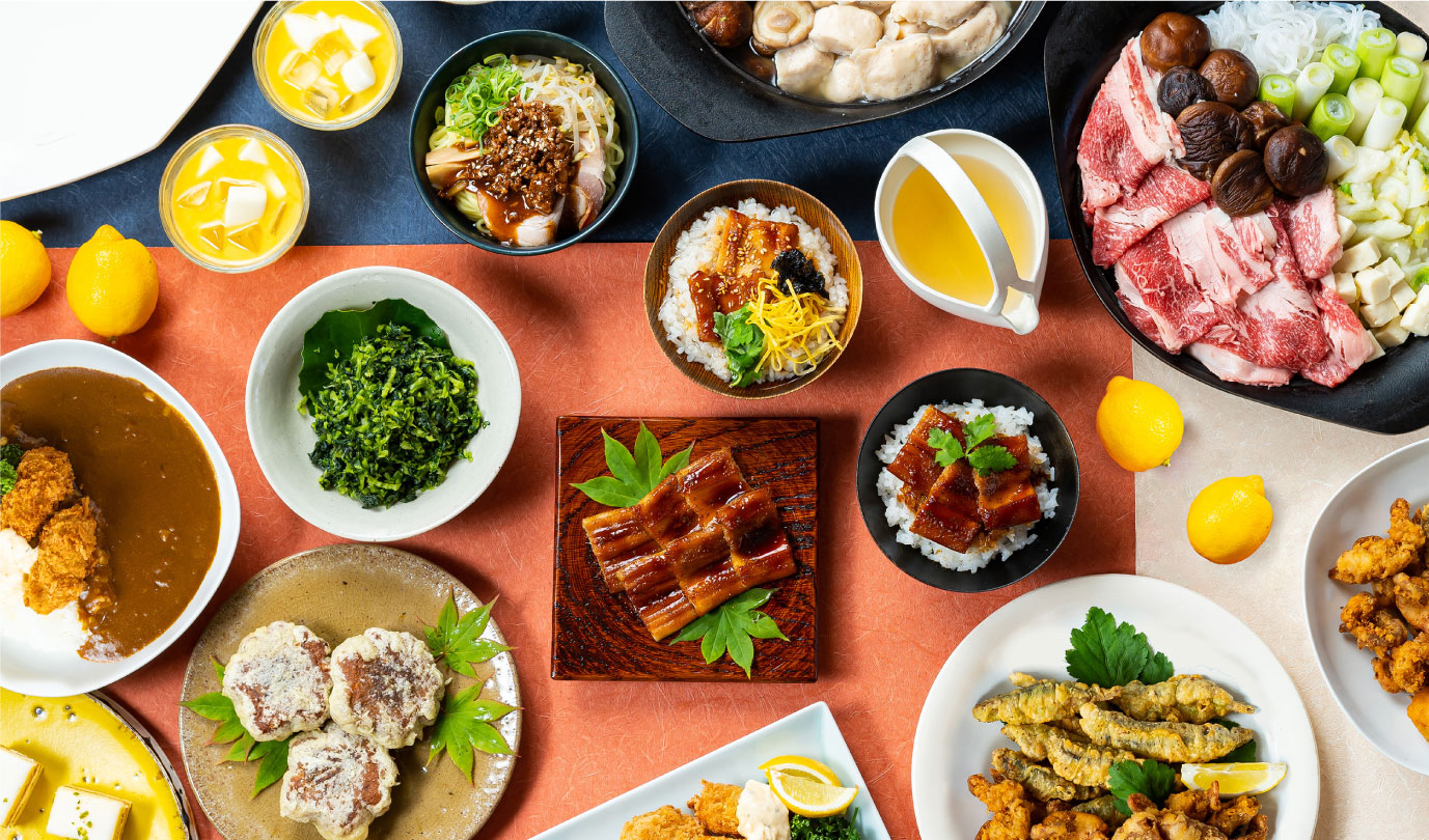 広定番のお好み焼きに、ちょっと贅沢な「あなご重」や、日替わりで広島の郷土料理「美酒鍋」や瀬戸内牛を使った「牛すき焼き」、カキフライやがんすなどの広島名物のフライなど、地元メニューを豊富にご用意しております。