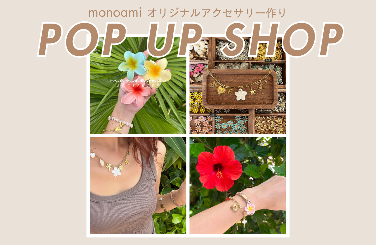 沖縄らしいアクセサリーを手作りするPOP UP SHOPがオープンします。南国の雰囲気を取り入れたアイテムを取り入れた、あなただけのアクセサ...