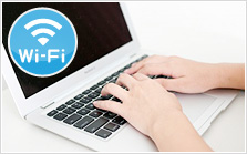 全室・全館Wi-Fi接続可能で、スマートフォンもタブレットも快適にご利用いた だけます。有線LAN接続も可能で、LAN接続とWi-Fi接続の同時接続が可能。