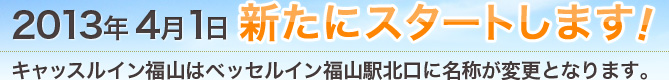 ※2013年3月31日までは、「キャッスルイン福山」として営業しております。4月1日の開業日にホテルの名称が変更しますが、電話番号は変更ございませんので、ご予約は同じ電話番号で受付いたします。