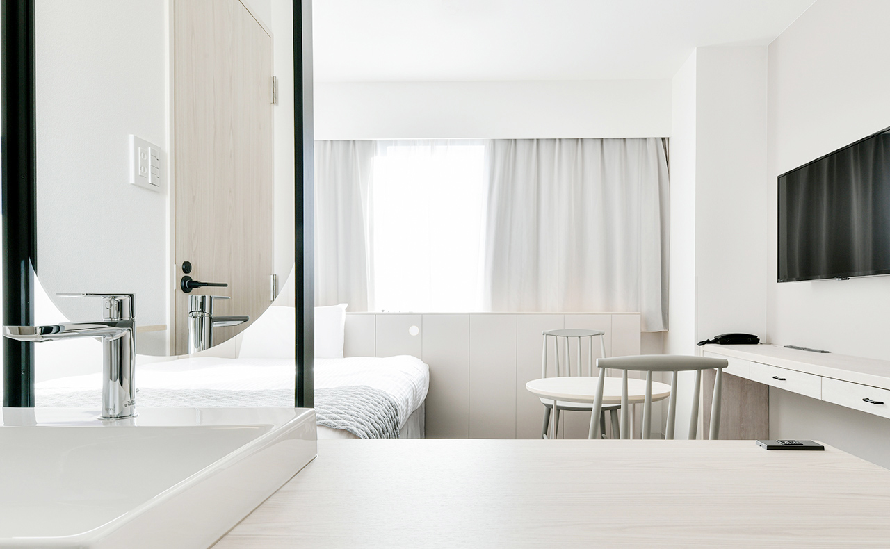 全室150cm幅のベッド完備で、ゆったりとした客室。洗面化粧台・バス・トイレがそれぞれ独立しており、快適にお過ごしいただけます。