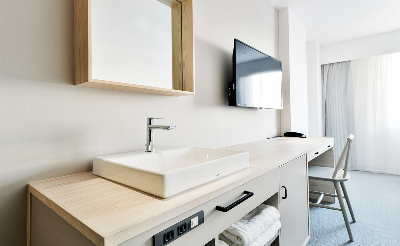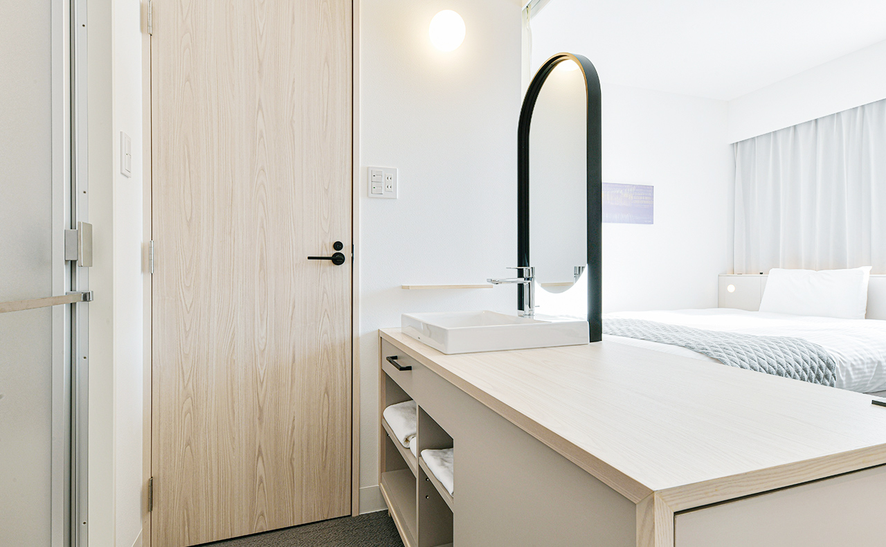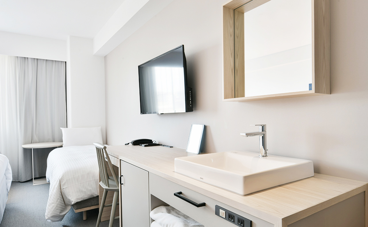 バス・トイレと一緒に洗面台のあるホテルが多いなか、当ホテルではバス・トイレとは別に洗面台を設置。鏡も大きく、ゆったりご利用になれます。