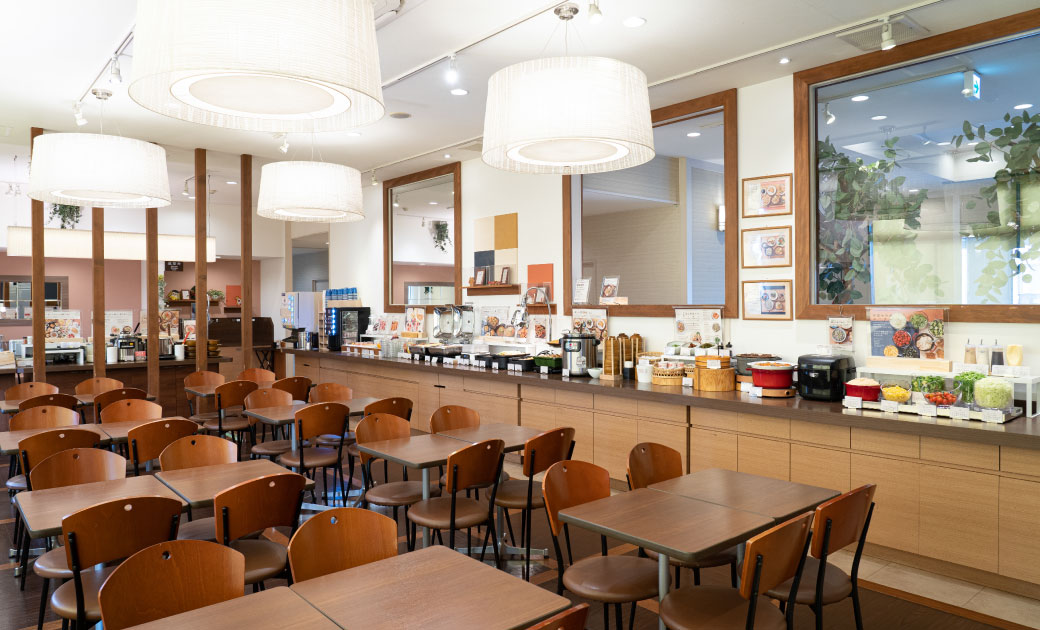 ほっとひといき、心と体に染み渡る、元気の出る朝ごはんを。ホテルから働きに出るお客様や、夜勤で帰ってくるお客様を温かく迎えて送り出す、心や体に染み渡る、一息ついて元気が出るような朝ごはんをどうぞ。