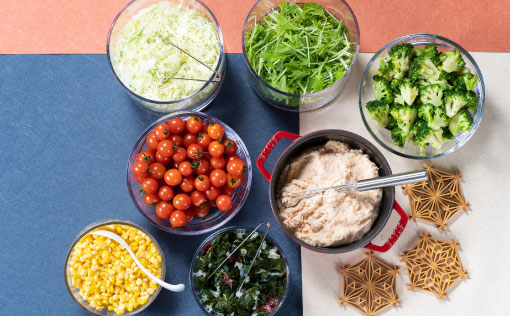 しっかり野菜を食べて、ヘルシーな一日の始まりを。お好みのトッピングを加えてオリジナルサラダをお楽しみください。