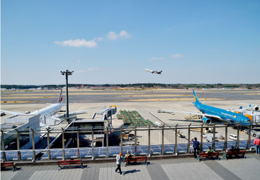 アートやグルメ、ショッピングなど楽しめるコンテンツがたくさん。飛行機の待ち時間はもちろん、遊びに行くだけでも楽しめる場所です。展望デッキからは、4,000メートルの滑走路から飛行機が離着陸する迫力のシーンを楽しむことができます。