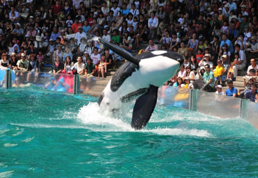 海の王者シャチ、イルカ、アシカ、ベルーガのパフォーマンスと環境一体型展示施設で11,000点を越える海や川の生き物を飼育展示しています。