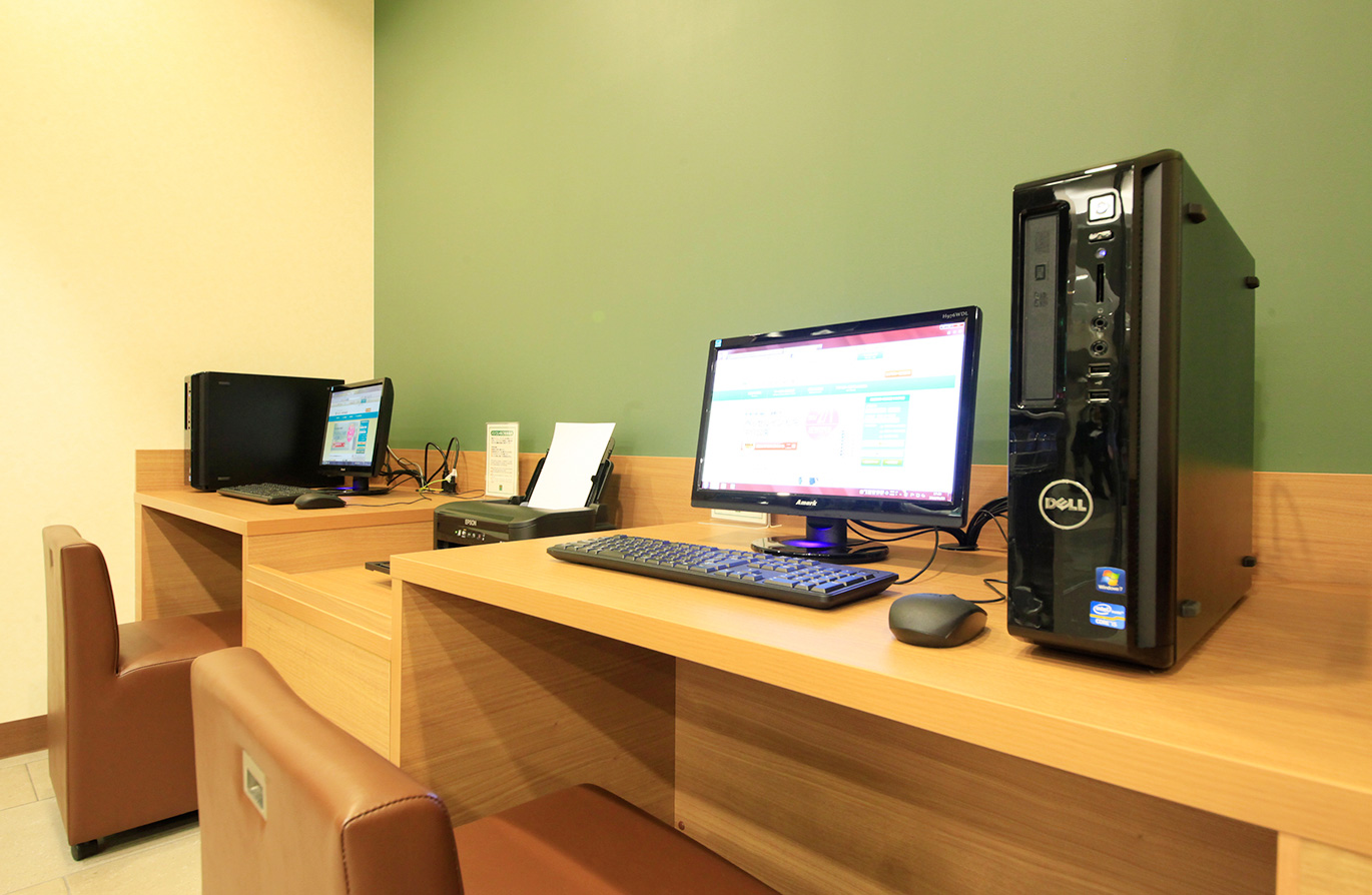 1Fロビーには、パソコン(Excel, Word)を完備しております。プリンターも無料でご利用いただけます。